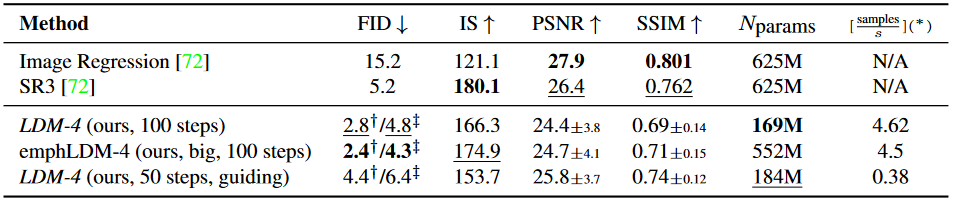 위 표는 downsampling factor $f$에 따른 LDM의 성능을 분석한 결과이다.